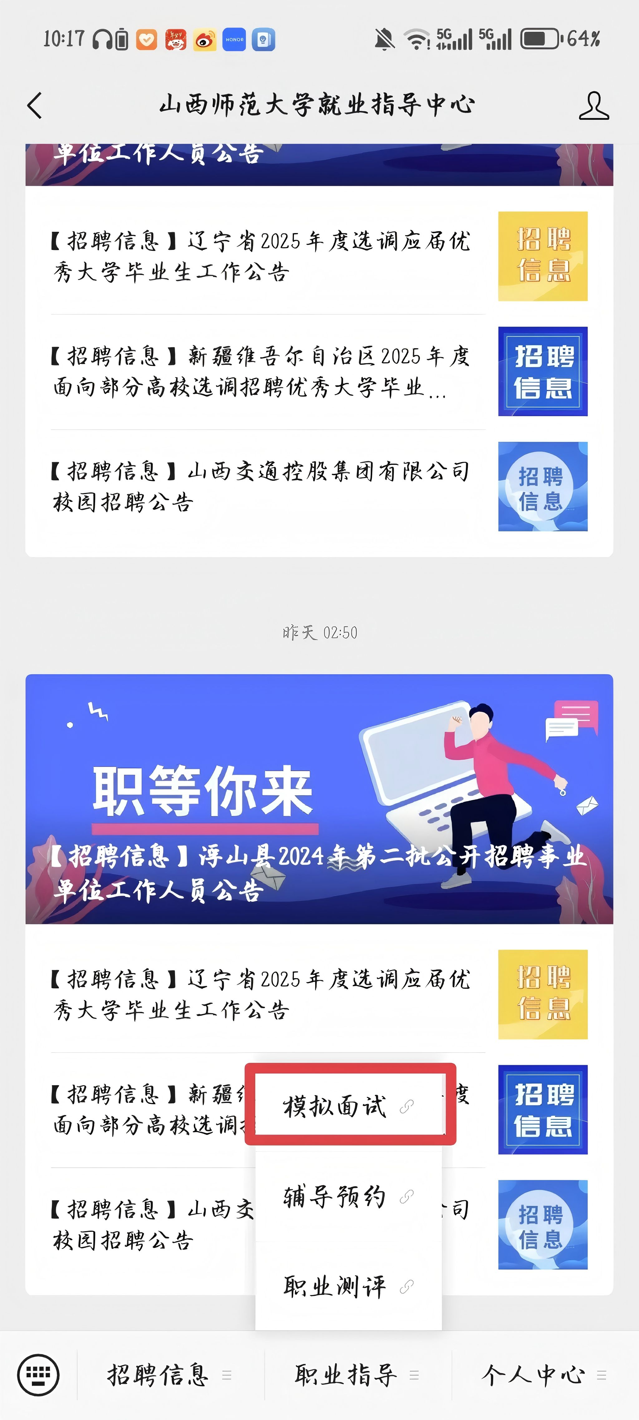 2. 找到入口:点击“职业指导”,一眼就能找到“模拟面试”的闪亮入口。